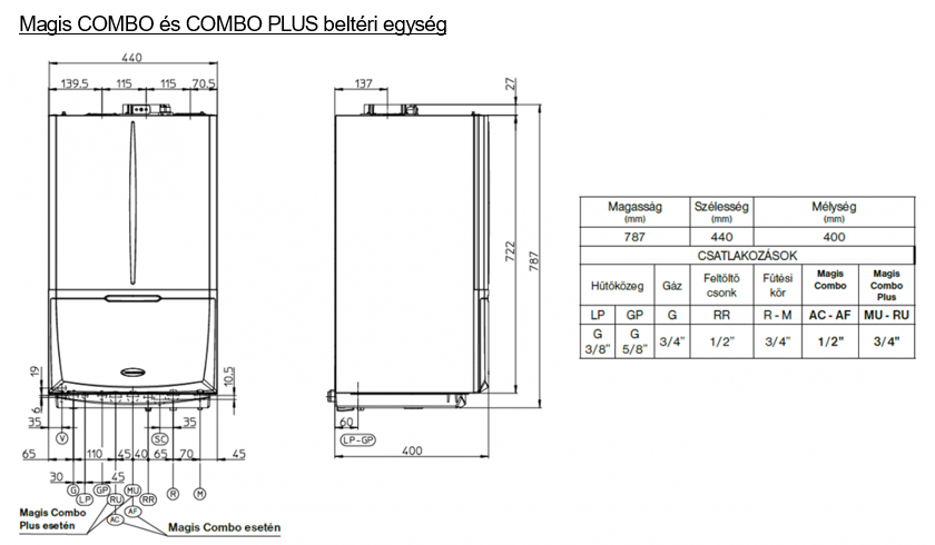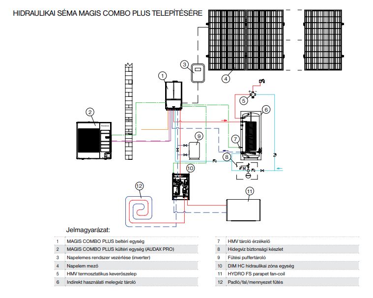 MAGIS COMBO PLUS: tárolós kombi változat nagyobb melegvíz igényhez. A beltéri egységhez indirekt HMV tároló csatlakoztatható(nem tartozék). Ez a változat képes használati melegvizet és fűtést vagy hűtést is biztosítani egy időben.