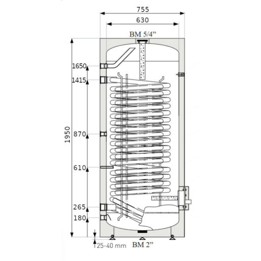 - 5/4” hőcserélő csatlakozással a tároló oldalán