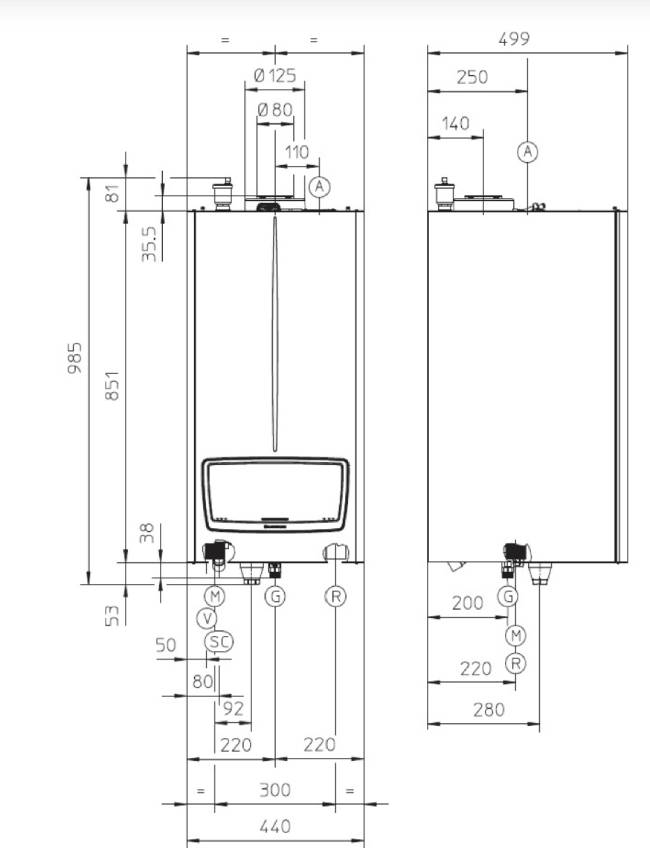Füstgáz elvezetés / levegő bevezetés: Ø 80 / 125 mm