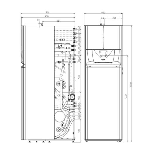 - Beltéri, álló hőközponttal és fűtési puffertartállyal