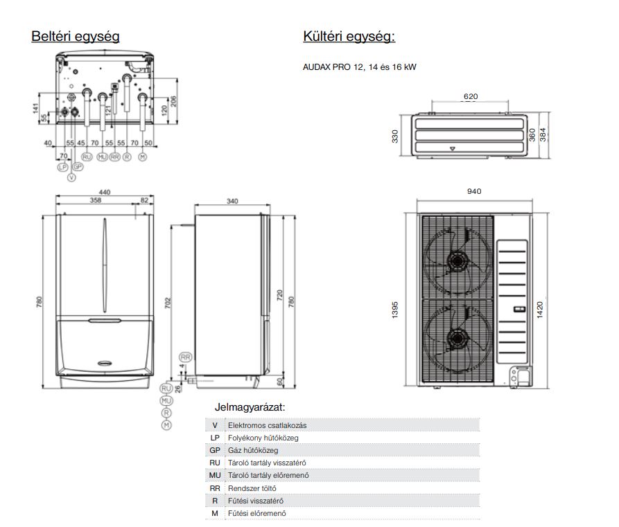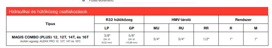 - előretöltött hűtőközeg: R32 az AUDAX PRO 4, 6 és 9, R410A az AUDAX PRO 12, 14 és 16 típusokban;