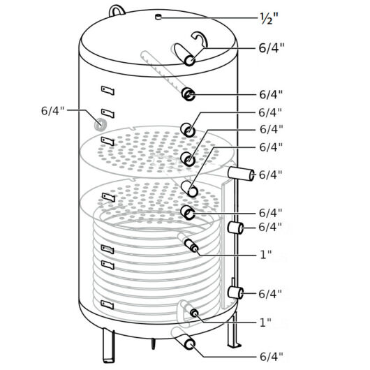 Tároló, Puffer tároló, 1 csőkígyó, 1000 liter felett