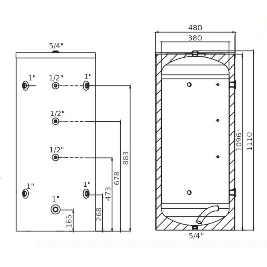 Tároló, Puffer tároló, Csőkígyó nélküli, 0 - 499 liter