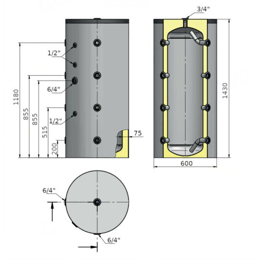 - Álló kivitelű fűtési puffertároló hőcserélő nélkül