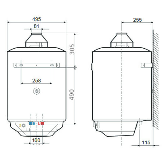 - Falra szerelhető, gázüzemű, tárolós vízmelegítő