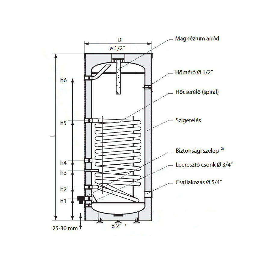 - Belső hőcserélője fixen behegesztett simacsöves csőkígyó