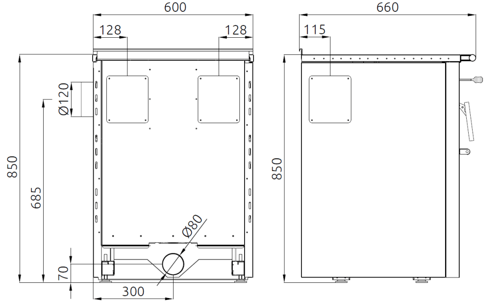 SENKO SG-60 – jobb és bal oldali füstgáz csatlakoztatásra előkészített változat